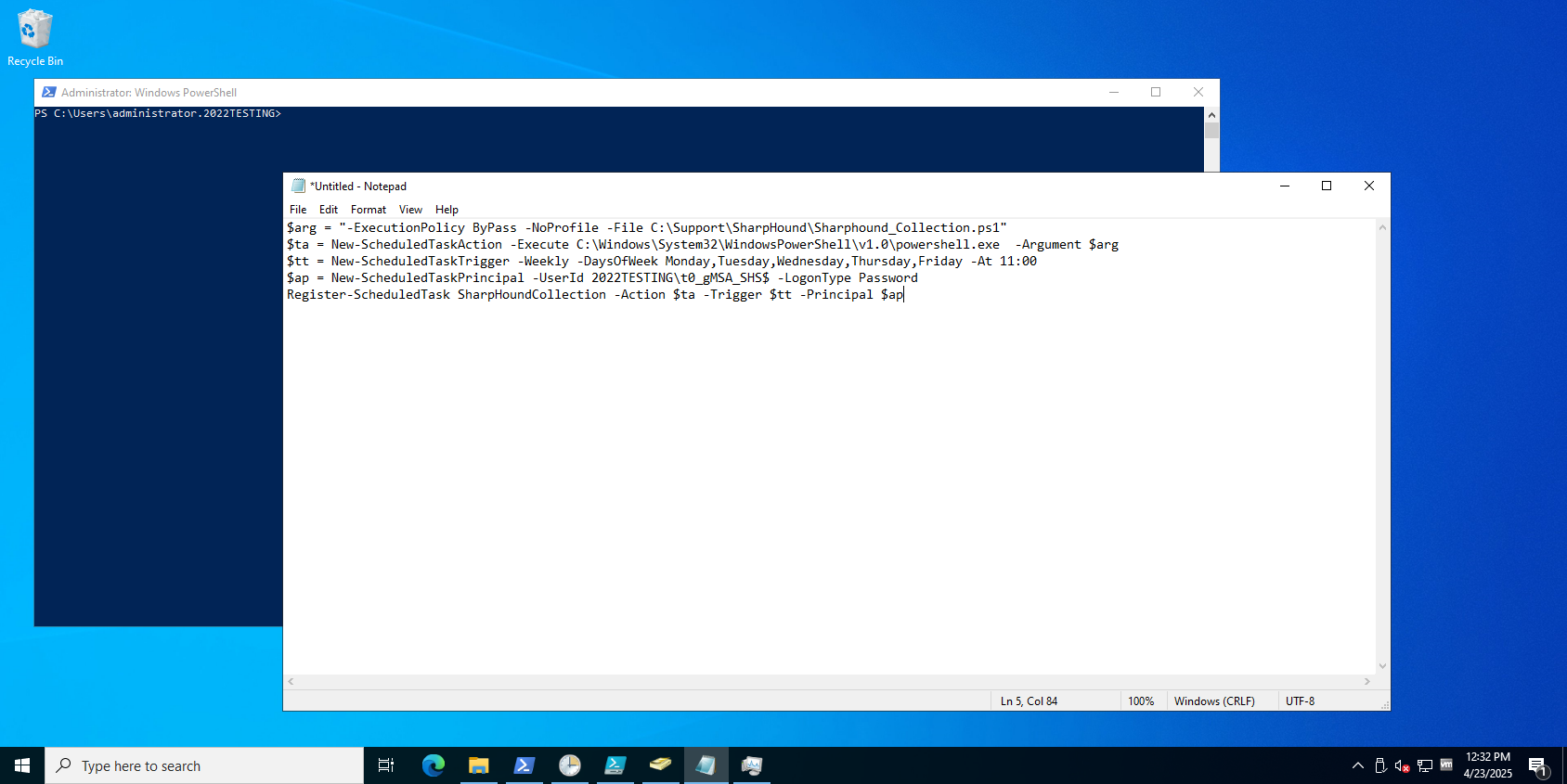 $ at the end of it. Enter the account in this format when adding it to the Domain Admins group.Create a SharpHound PowerShell script to run as a scheduled task