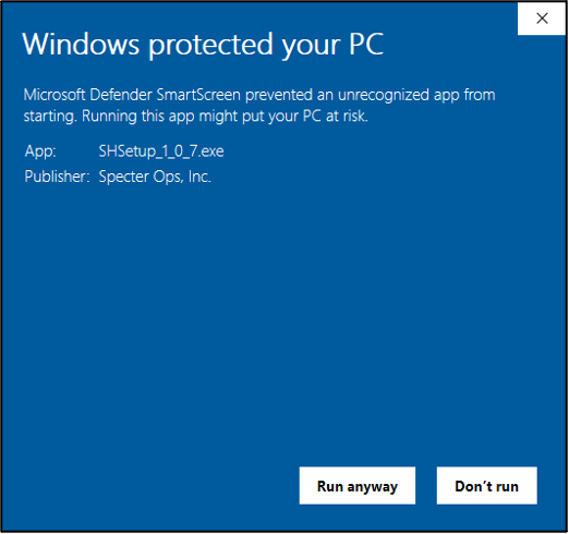 - Validate the publisher shows Specter Ops, Inc. then click Run anyway.
