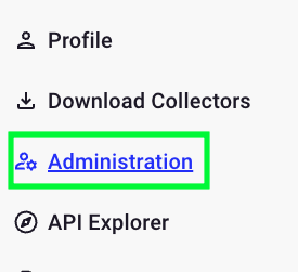 By default, all users utilize a username and password via the built‑in authentication service. When creating or modifying a user, you can change this setting. When creating a new user, ensure the user does not share an email address with any other users (across all authentication methods).- While logged in as an Administrator, open the slider on the left, then click “Administration.”